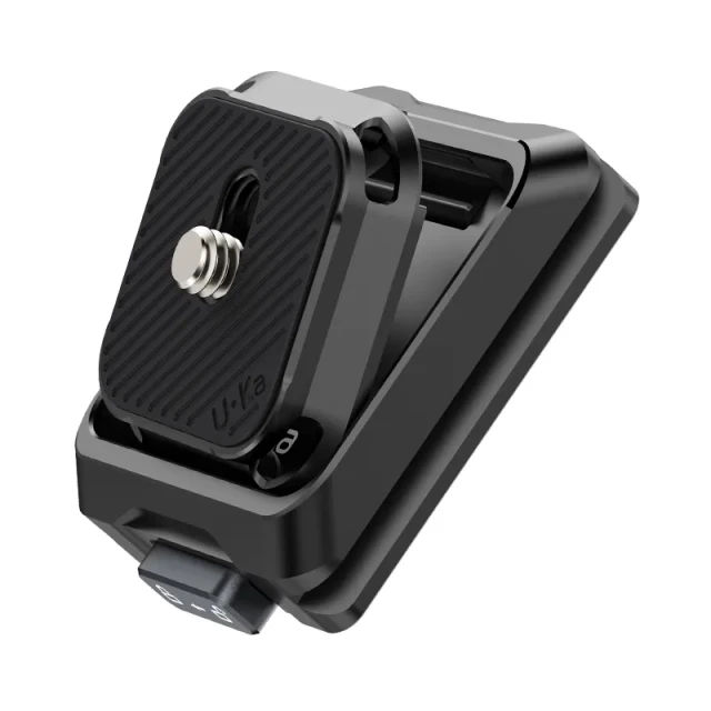 Das Schnellwechselsystem Ulanzi Uka C007 besteht aus einer 85 × 60 mm großen Schwalbenschwanzplatte und einer 15 mm starken Basis, die beide aus 6061-T6-Aluminium CNC-gefräst und schwarz harteloxiert sind (Typ III, 50 µm Dicke, IP66 Staub-/Wasserbeständigkeit), die eine dynamische Nutzlast von 20 kg (getestet bei 2 m/s² Beschleunigung) und eine statische Last von 25 kg über einen um 45° abgewinkelten Einführmechanismus trägt, der in weniger als 0,8 s in eine Edelstahl-Federverriegelung (AISI 316, 50 N Haltekraft) einrastet. Das Schwalbenschwanzprofil entspricht den Arca-Swiss- (39 mm Breite, 10 mm Tiefe) und F38/Uka-Standards und ermöglicht spielfreie (<0,05 mm Toleranz) Mehrwinkelverschiebungen (0–90°), die durch zwei 3-mm-Edelstahlstifte (Scherfestigkeit 150 kg) und einen 1/4-Dreh-M4-Knopf (2 Nm Drehmoment) gesichert. Das Gewinde umfasst 11× 1/4"-20 UNC (entspricht M6) und 4× 3/8"-16 UNC-Löcher sowie 4× 3 mm ARRI-Fixierstifte für die präzise Ausrichtung mit Zubehör von Manfrotto, DJI RS, SmallRig oder Peak Design. Vier integrierte 6-mm-Eckschlaufen (nylonverstärkt) nehmen Sicherheitsleinen auf (bis zu 100 kg Bruchfestigkeit). Das 78 g schwere Kit (Platte 45 g, Basis 33 g) kann bei Temperaturen von –20 °C bis +80 °C ohne Werkzeug installiert werden und minimiert die Unwucht des Rigs (CG-Verschiebung < 2 mm) für Kino-, Gimbal- oder Run-and-Gun-Anwendungen.
