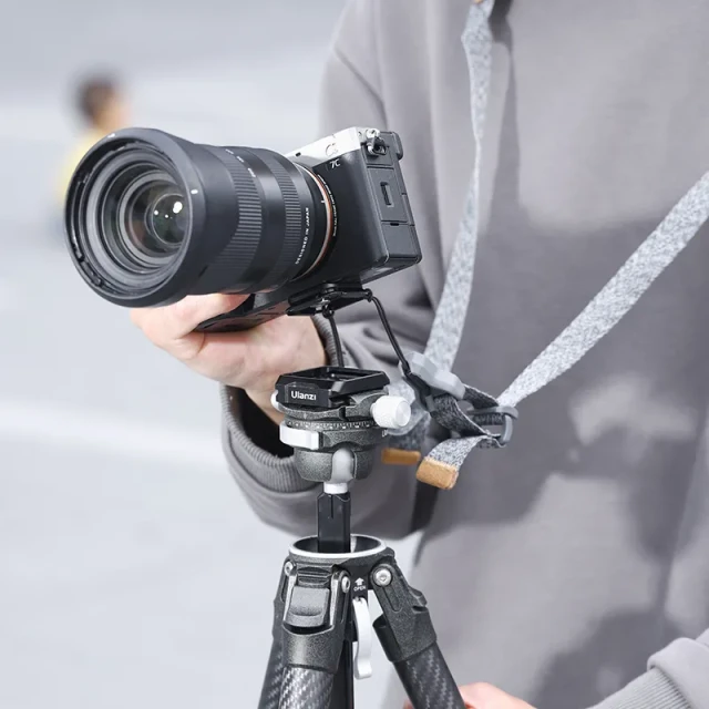 Das Ulanzi Uka C007 ist ein 78 g schweres, CNC-gefrästes Schnellwechselplatten-Set mit 85 × 60 mm Arca-Swiss/F38/Uka-Schwalbenschwanzkompatibilität, 20 kg dynamischer Nutzlast (25 kg statisch), 0,8 s abgewinkeltem Klickverschluss über Edelstahl-Federriegel, doppelten Sicherheitsstiften, 1/4-Drehknopf, 11× 1/4"-20/4× 3/8"-16-Gewinden, 4× ARRI-Positionierungslöchern und vier 6-mm-Schlaufe-Ösen – ermöglicht einen sicheren, werkzeuglosen Austausch für Gimbals, Käfige und Stative.