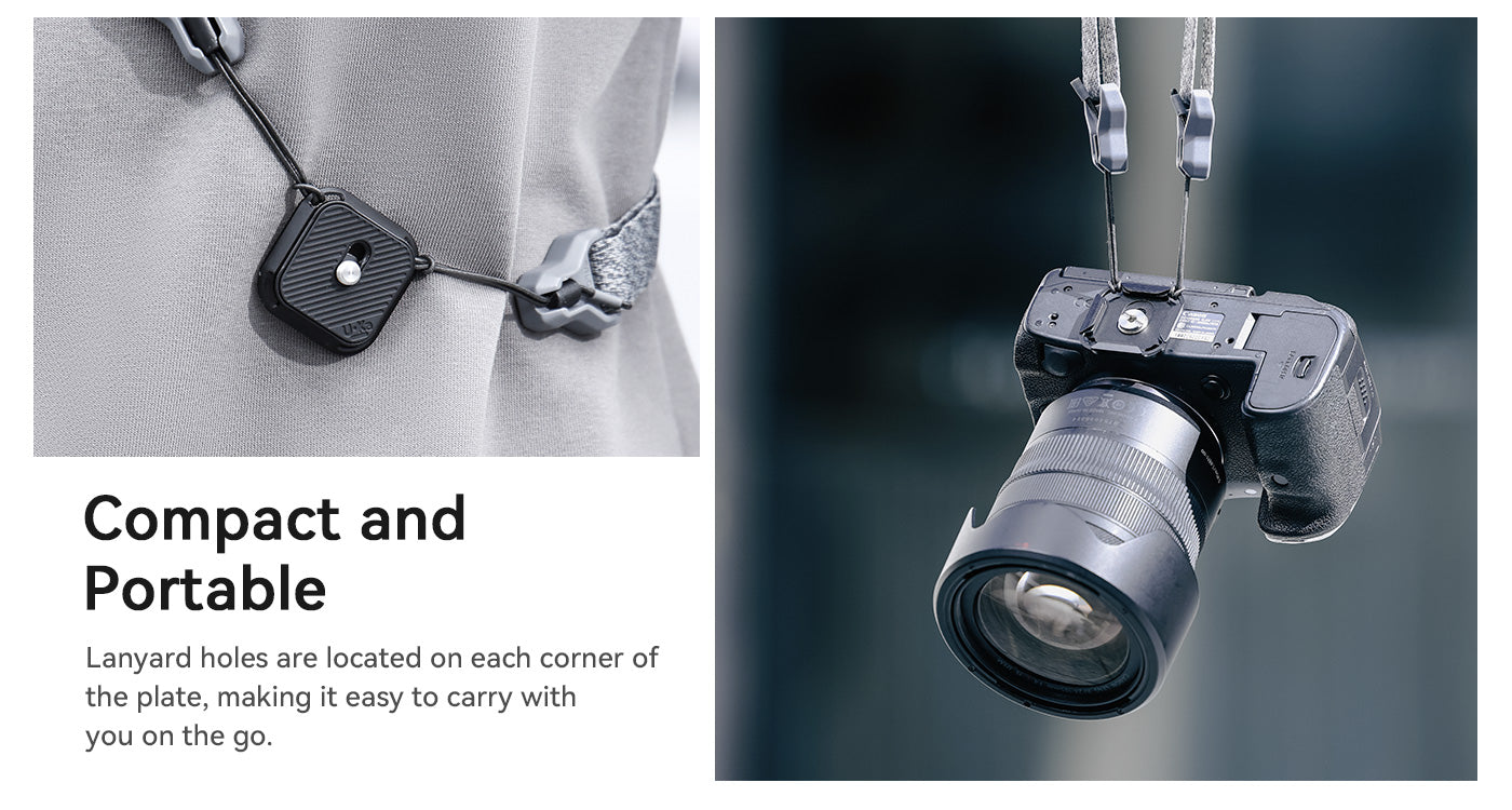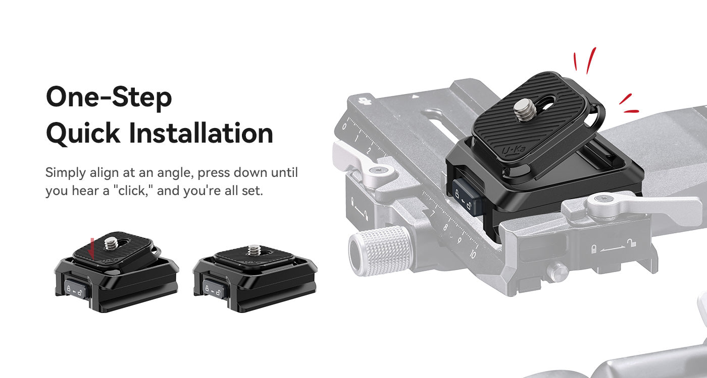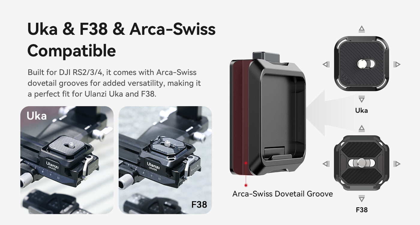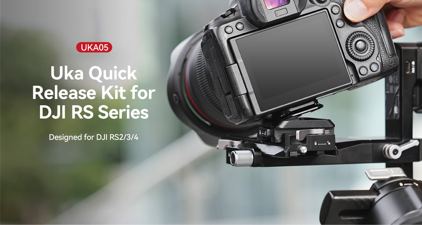 Das Ulanzi UKA05 Uka Quick Release Kit für DJI RS2/3/4 ist das ultimative Upgrade für eine schnelle und sichere Kamerabefestigung. Es ist mit Arca-Swiss, Uka und F38 kompatibel und bietet eine Ein-Schritt-Installation, rutschfeste Gummipads und eine Sicherheitsverriegelung, um ein versehentliches Lösen zu verhindern. Dank seiner kompakten Bauweise und dem Design mit Lanyard-Vorrichtung ist es ideal für kreative Menschen, die viel unterwegs sind, und ein Muss für Nutzer von DJI RS-Gimbals.