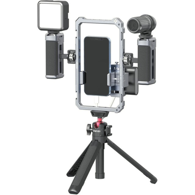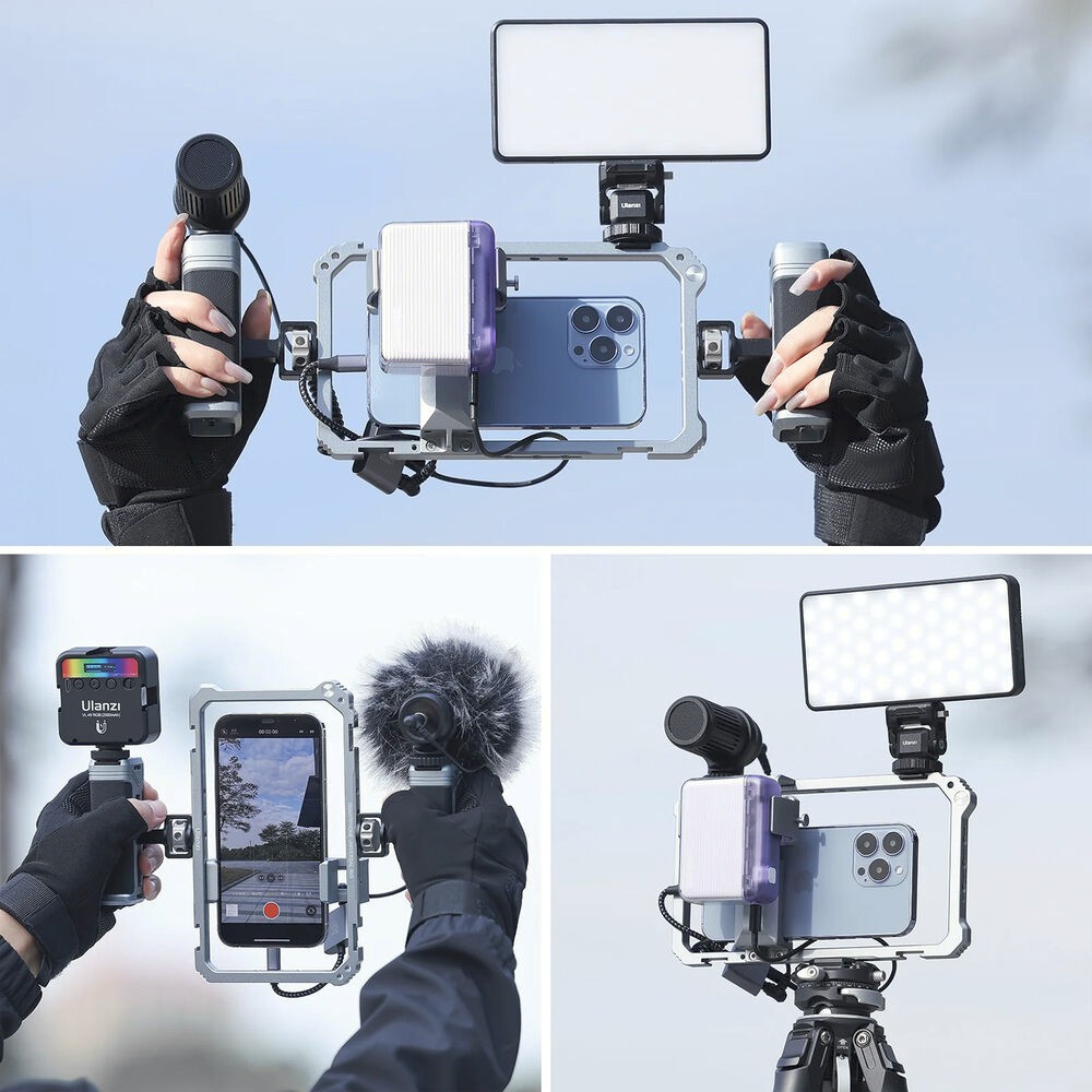 Das Ulanzi Universal Phone Vlogging Video Rig ist ein vielseitiges, professionelles Rig für Smartphones mit zwei verstellbaren Griffen, mehreren Befestigungspunkten und rutschfesten Polstern, um Ihre Aufnahmen für Vlogs, Streaming oder mobiles Filmen zu stabilisieren.