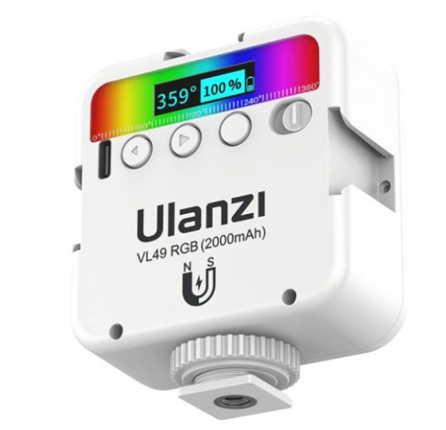 Die Ulanzi VL49 RGB-LED-Lampe ist eine kompakte und vielseitige On-Camera-Leuchte mit vollständiger RGB-Farbsteuerung, einstellbarem Weißabgleich von 2500 K bis 9000 K und 13 integrierten Lichteffekten. Sie wurde für Vlogger, Fotografen, Streamer und Remote-Mitarbeiter entwickelt und bietet hochwertige Beleuchtung in einem tragbaren, magnetisch befestigten Design mit langer Akkulaufzeit und flexiblen Befestigungsmöglichkeiten.