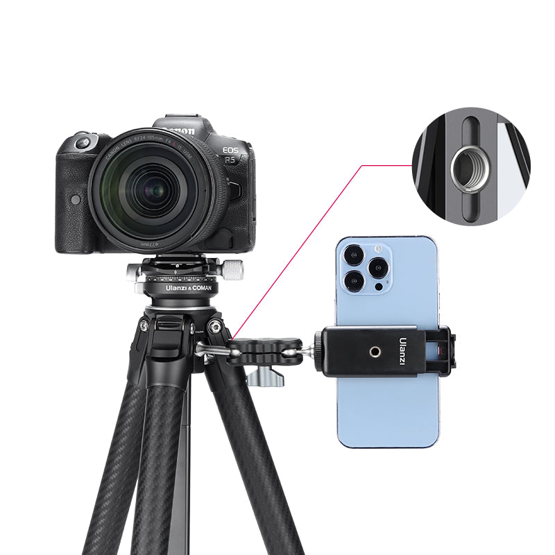 - Der Kugelkopf des Stativs ist nicht abnehmbar. Wenn Sie den Kugelkopf des Stativs austauschen möchten, empfehlen wir Ihnen den Kauf des Ulanzi F38 Schnellwechsel-Reisestativzubehörs – 1/4 Mittelsäule.