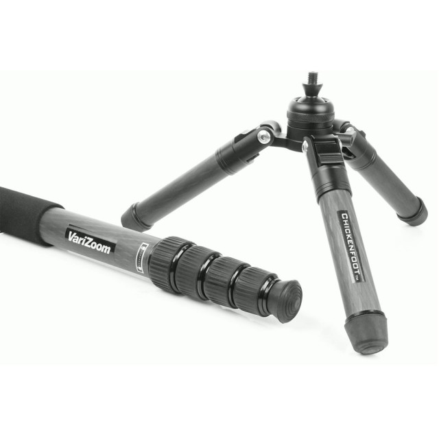 Dieses kompakte und leichte Stativ bietet die Tragbarkeit und den schnellen Aufbau eines herkömmlichen Einbeinstativs mit der zusätzlichen Stabilität eines Stativfußes. Der Dreibeinstativfuß ist mit dem Einbeinstativteil über ein Kugelgelenk verbunden, das eine reibungslose Neupositionierung des Einbeinstativs ermöglicht, sodass Sie jeden gewünschten Winkel einnehmen können. Der ChickenFoot kann als Stativ/Einbeinstativ, als einfacher Handstabilisator, als ausziehbarer Handausleger für kleine Kameras oder sogar als Ständer für kleine Lampen und Mikrofone verwendet werden und wird schnell einen Platz in Ihrem Videografie-Toolkit finden. Das 4-teilige Karbonfaserdesign ermöglicht es, das Gerät in eine sehr kompakte Form zusammenzuklappen und auf eine Höhe von 6,5 Fuß auszudehnen, während es eine ausgezeichnete Steifigkeit beibehält. Hochwertige Twist-Lock-Beschläge ermöglichen eine einfache und sichere Einstellung für Aufnahmen unterwegs. Die Stativbasis lässt sich für den Transport zusammenklappen und in 3 Positionen verriegeln, um eine flexible Konfiguration zu ermöglichen. Die verstellbaren Gummifüße des Stativs lassen sich zur Nivellierung herausdrehen, und die mitgelieferten Stachelfüße sorgen für zusätzliche Stabilität auf unterschiedlichen Untergründen. Sie können Ihre Kamera direkt auf dem flachen Sockel befestigen, um ein geringes Gewicht zu erreichen, oder einen eigenen Foto- oder Videokopf für eine präzise Schwenk-/Neigungssteuerung hinzufügen. Im Lieferumfang enthalten sind außerdem eine weich gepolsterte Tragetasche und eine abnehmbare Handschlaufe für den sicheren Transport.
