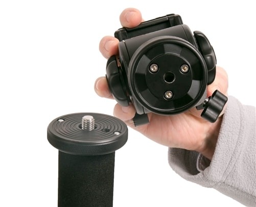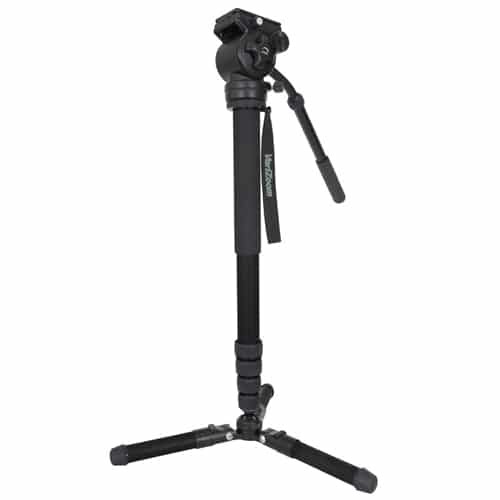 Im Lieferumfang enthalten ist ein flüssiger Schwenk-/Neigekopf für sanfte Kamerabewegungen, wodurch sich das System ideal für die Videoproduktion eignet. Das Einbeinstativ lässt sich von 26" bis 83" (6,9 ft) ausziehen und behält dank seiner Aluminiumkonstruktion und den hochwertigen Drehverschlüssen eine hervorragende Steifigkeit. Die klappbare Stativbasis lässt sich in drei Positionen arretieren, kann für den herkömmlichen Einbeinstativgebrauch entfernt werden und verfügt über verstellbare Gummifüße mit austauschbaren Spikes für Stabilität auf verschiedenen Oberflächen.