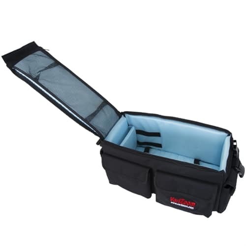 Die VariZoom VZ-B20 Kameratasche ist eine professionelle, strapazierfähige Tragetasche zum Schutz und Transport von DV/HDV-Kameras und Zubehör. Mit ihren dick gepolsterten Wänden, der verstärkten Konstruktion und dem gut sichtbaren himmelblauen Innenraum eignet sie sich perfekt für Kameras wie die Sony FS5, Z190, NX100, Panasonic DVX200, CX350, UX180 und viele mehr.