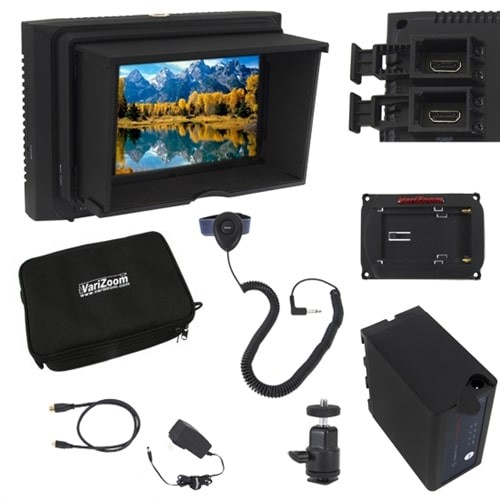 Das VariZoom VZ-M5 Kit (VZM5K) ist eine komplette 5-Zoll-HDMI-Monitoring-Lösung für professionelle Videoproduktionen. Dieses Deluxe-Kit enthält den ultrascharfen VZM5-Monitor, eine zusammenklappbare Sonnenblende, einen Sony-Akku der L-Serie mit hoher Kapazität, ein Ladegerät, eine schwenkbare Schuhhalterung, HDMI-Kabelverschlüsse, eine Fernbedienung für den Zoom zur Fokussierung, ein Netzteil, zwei HDMI-Kabel und eine weiche Tragetasche – alles, was Sie für eine zuverlässige und genaue Überwachung am Set benötigen.