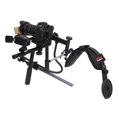 Das ZG Rig DSLR wurde speziell für DSLR-Videoanwendungen entwickelt und bietet umfangreiche Einstellmöglichkeiten, um sich praktisch jedem Körperbau und jedem Aufnahmestil anzupassen. Es kann für die Bedienung mit der rechten oder linken Schulter, für hohe oder niedrige Kamerawinkel und für nahe oder entfernte Befestigungspositionen konfiguriert werden. Eine extra lange Zubehörhalterung bietet Platz für Monitore, Leuchten, Mikrofone oder anderes Zubehör und ist damit die ideale Lösung für professionelle DSLR-Filmemacher, die Mobilität, Komfort und präzise Steuerung zu einem außergewöhnlichen Preis-Leistungs-Verhältnis suchen.