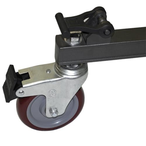 Der VariZoom VZD100 Video Dolly ist ein hochbelastbarer Stativwagen, der bis zu 140 lbs tragen kann und für die reibungslose Bewegung großer Stativ-, Ausleger- oder Kranaufbauten mit feststellbaren Rädern und klappbarer Tragbarkeit ausgelegt ist.