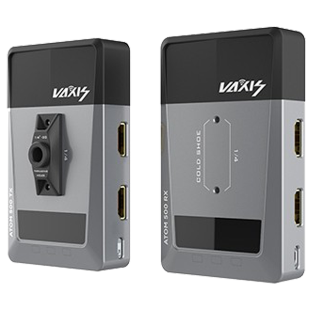 Das Atom 500 HDMI Wireless Video TX/RX Kit von Vaxis verfügt über einen HDMI-Anschluss und ermöglicht die Übertragung von visuell verlustfreien 1080p H.265-Videosignalen im 5GHz-Band mit einer Latenz von weniger als 80 ms und einer Reichweite von bis zu 150 m bei Sichtverbindung. Sie überträgt außerdem Multicasts über Wi-Fi an bis zu drei iOS-Geräte zur Überwachung und bietet ein helles OLED-Statusdisplay, einen USB-C-Anschluss für die Stromversorgung (Typ-C-Kabel im Lieferumfang enthalten) und Upgrades, einen Steckplatz für einen Akku der L-Serie (Akku nicht im Lieferumfang enthalten) sowie die Möglichkeit, den Lüfter während der Produktion abzuschalten.