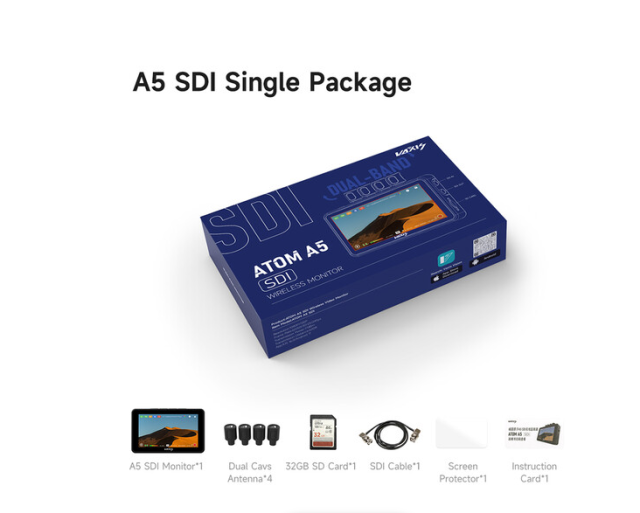 Der Vaxis Atom A5 SDI ist ein kompakter 5,5-Zoll-Touchscreen-Funkmonitor mit einer Auflösung von 1920 x 1080 Pixeln und integrierter TX/RX-Funktionalität, der innerhalb des Atom-Ökosystems eine Übertragungsreichweite von bis zu 1000 Fuß unterstützt. Er verfügt über SDI/HDMI-Eingänge und Loop-Ausgänge, integrierte MP4-Aufzeichnung…
