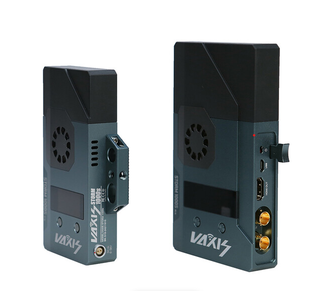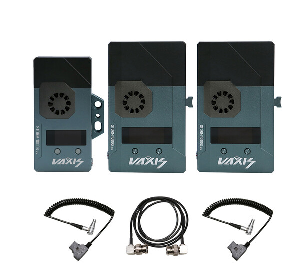 Das Vaxis Storm 1000S Wireless Transmitter + Dual Receivers Kit liefert visuell verlustfreies 1080p-Video mit einer Latenz von unter 1 ms über eine Sichtverbindung von 1148 Fuß. Es verfügt über 3G-SDI- und HDMI-Ein-/Ausgänge mit Loop-Ausgang am Sender, zwei SDI/HDMI-Ausgängen pro Empfänger, Multicast-Unterstützung, Cross-Konvertierung, Timecode-/Metadaten-Passthrough und störungsfreiem Betrieb über 20 Kanäle in den 5,1–5,9-GHz-Bändern.