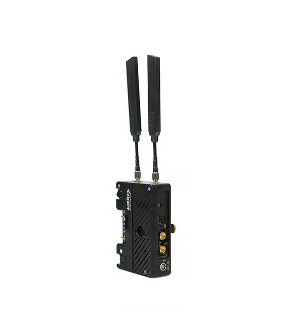 Er wird über zwei Gold-Mount-Batterieplatten mit Pass-Through-Funktion mit Strom versorgt, lässt sich direkt an Gold-Mount-Kameras befestigen und versorgt sowohl die Kamera als auch den Sender über eine einzige Batterie mit Strom. Für externe Stromquellen steht ein zusätzlicher 2-poliger LEMO-Stromeingang zur Verfügung. Zu den weiteren professionellen Funktionen gehören ein helles OLED-Display, ein robustes Metallgehäuse, eine intelligente aktive Kühlung, Timecode- und Metadaten-Passthrough, Unterstützung für die sofortige Wiedergabe von ARRI ALEXA Mini und ein 1/4"-20-Befestigungspunkt.