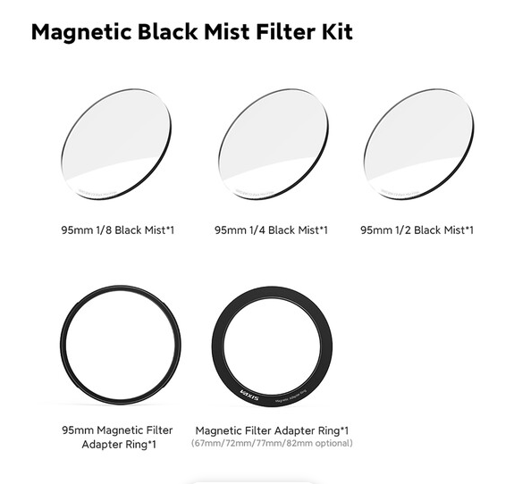 Das VAXIS VFX 95 mm Magnetic Black Mist Filter Kit bietet drei Stärken von Black Mist-Filtern (1/4, 1/8, 1/2) für eine individuell anpassbare weiche Lichtstreuung mit reduzierten Glanzlichtern und Kontrasten, gepaart mit einem 95 mm Magnetadapterring für eine schnelle, stapelbare Befestigung an der Tilta Mirage Matte Box – jeder…
