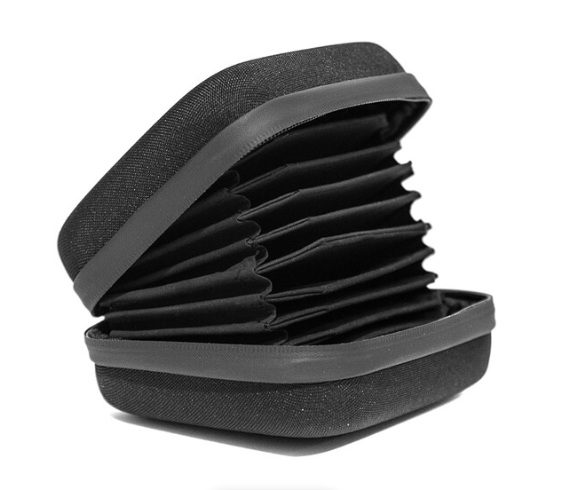 Der Vaxis VFX Filter Case (VAR23-13) ist eine kompakte, wasserdichte und robuste Aufbewahrungslösung in Schwarz, die bis zu zehn 105-mm-Filter sicher in einzelnen, mit Stoff ausgekleideten Fächern aufbewahrt, um Kratzer zu vermeiden. Er verfügt über einen zuverlässigen Reißverschluss und eine robuste Außenhülle aus Stoff für den sicheren Transport und die Organisation von Filmfiltern am Set.