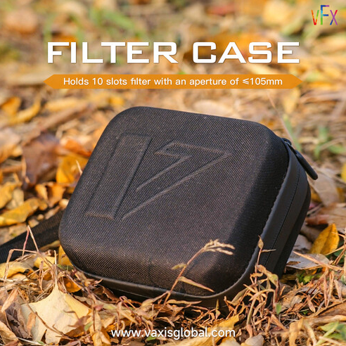 Der Vaxis VFX Filter Case (VAR23-13) ist eine kompakte, wasserdichte und robuste Aufbewahrungslösung in Schwarz, die bis zu zehn 105-mm-Filter sicher in einzelnen, mit Stoff ausgekleideten Fächern aufbewahrt, um Kratzer zu vermeiden. Er verfügt über einen zuverlässigen Reißverschluss und eine robuste Außenhülle aus…