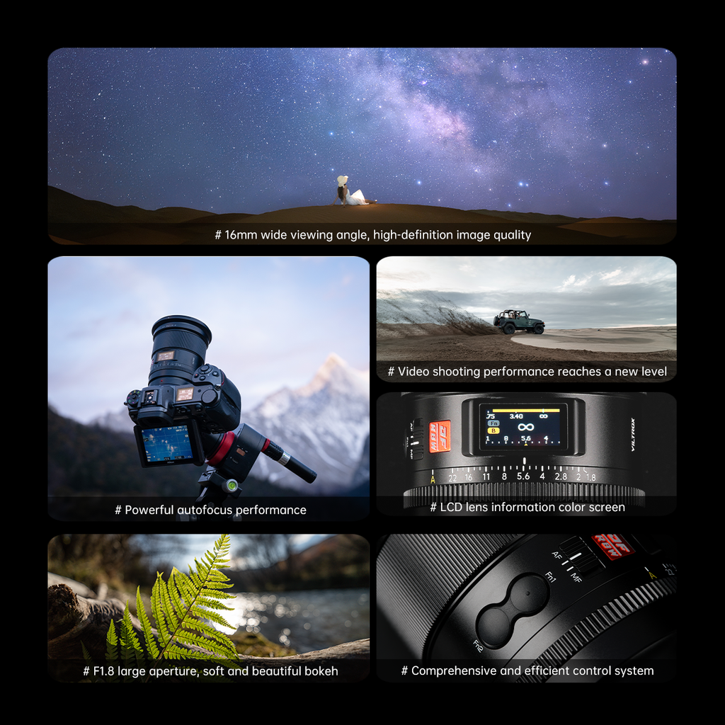 Das 16 mm F1,8-Objektiv bietet den Vorteil, dass es Landschafts- und Astrofotografie ermöglicht, da es punktförmige Lichtquellen akkurat wiedergeben und chromatische Aberration effektiv unterdrücken kann.