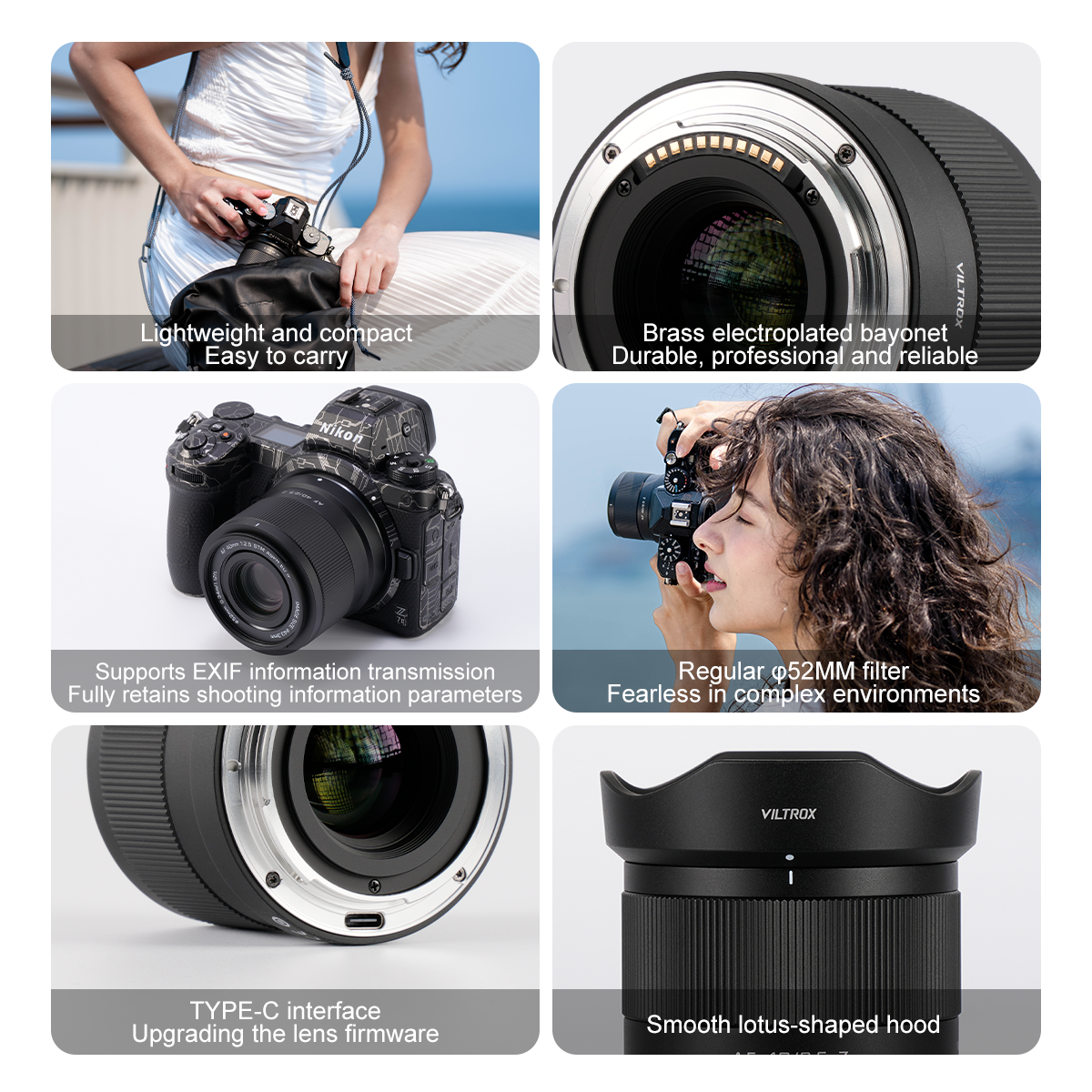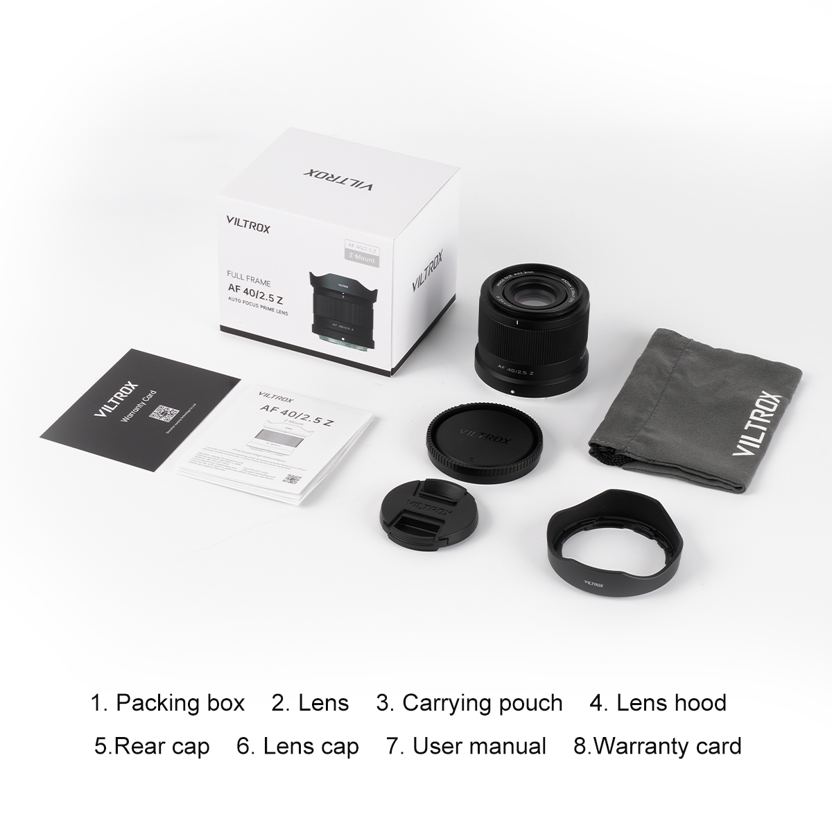AF 40mm F2.5, Viltrox Air Serie leichte Vollformat-Serie führt eine 40mm Brennweite, effiziente und präzise Autofokus-System, um wunderbare Momente zu erfassen, so dass jeder den Spaß an der Fotografie genießen können. Deckt das Vollformat-Bildfeld ab und passt zu mehreren Modellen. Kompaktes und leichtes Objektivgehäuse, einfach zu transportieren. Die vielseitige 40-mm-Brennweite ist ideal für tägliche Aufnahmen und Reisen.