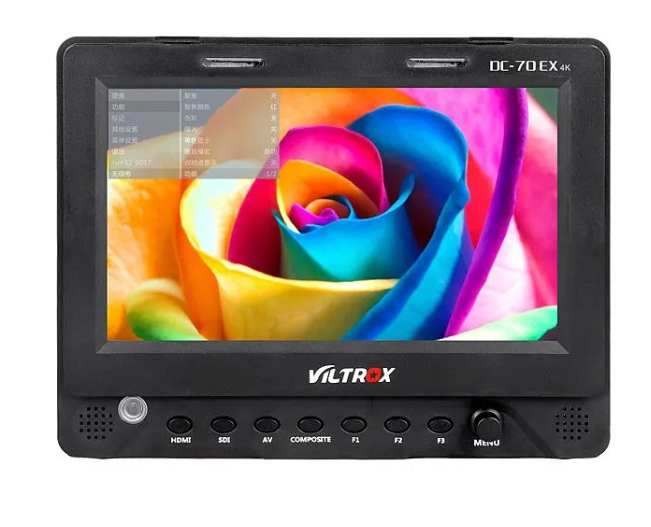 Der Viltrox DC-70 EX ist ein leichter 7-Zoll-HD-Monitor für Kameras, der über HDMI-, SDI- und AV-Eingänge Videos mit einer Auflösung von bis zu 1080p unterstützt und über Durchschleifausgänge sowie wichtiges Zubehör für die professionelle Überwachung vor Ort verfügt.