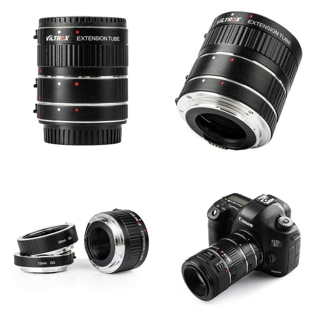 DG-C Objektivverlängerungsadapter für Canon EF/EF-S Objektive und DSLR-Kameras. Enthält 3 Tuben (12mm, 20mm, 36mm) für 7 Vergrößerungsoptionen. Verwandelt Ihr Objektiv in ein Makroobjektiv für Nahaufnahmen.