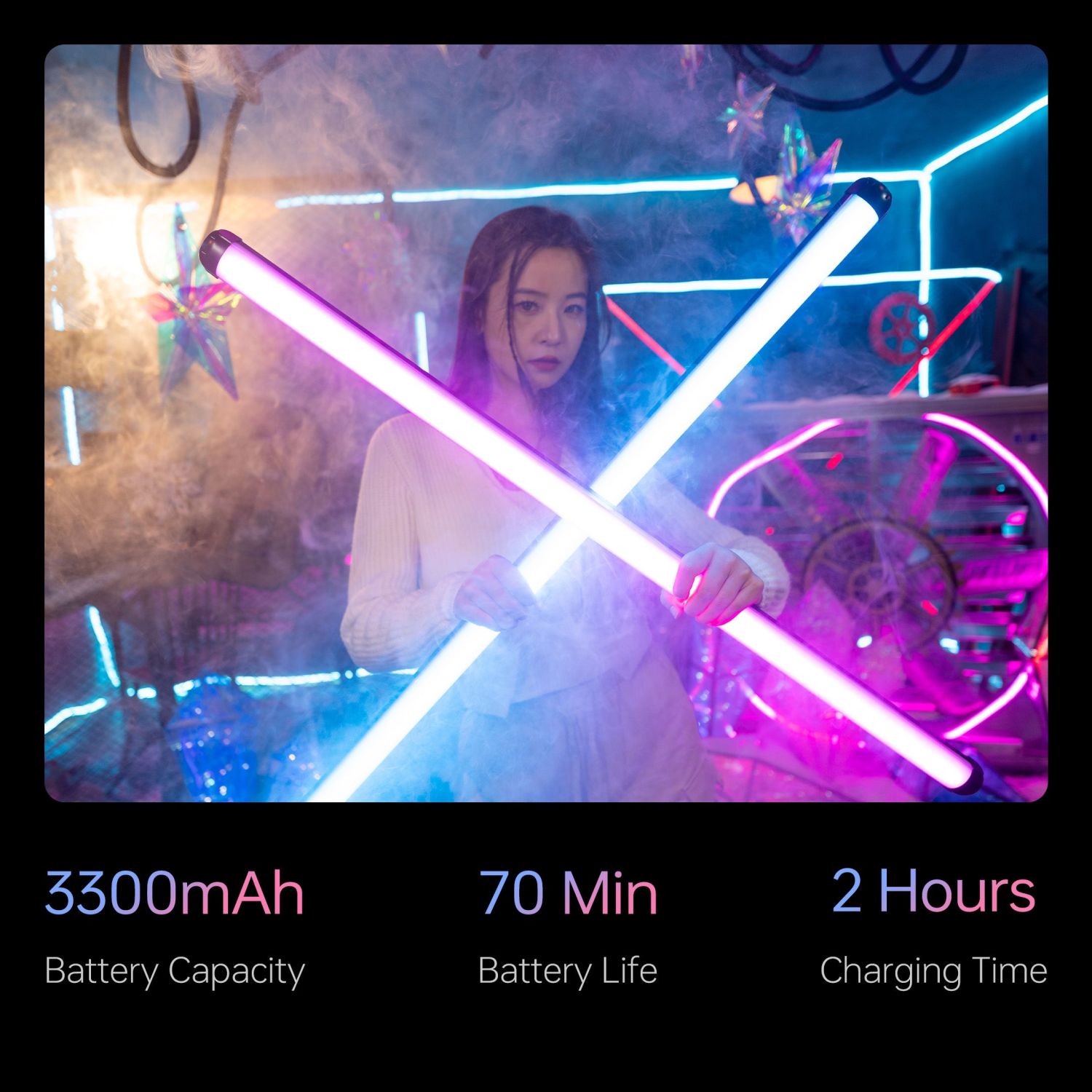 Die K90 verfügt über eine fortschrittliche Softlight-Röhre, die eine natürliche, sanfte Lichtatmosphäre schafft. Erzielen Sie schöne Hauttöne und einen sanften Effekt, ohne zusätzliches Weichzeichner-Zubehör zu benötigen.