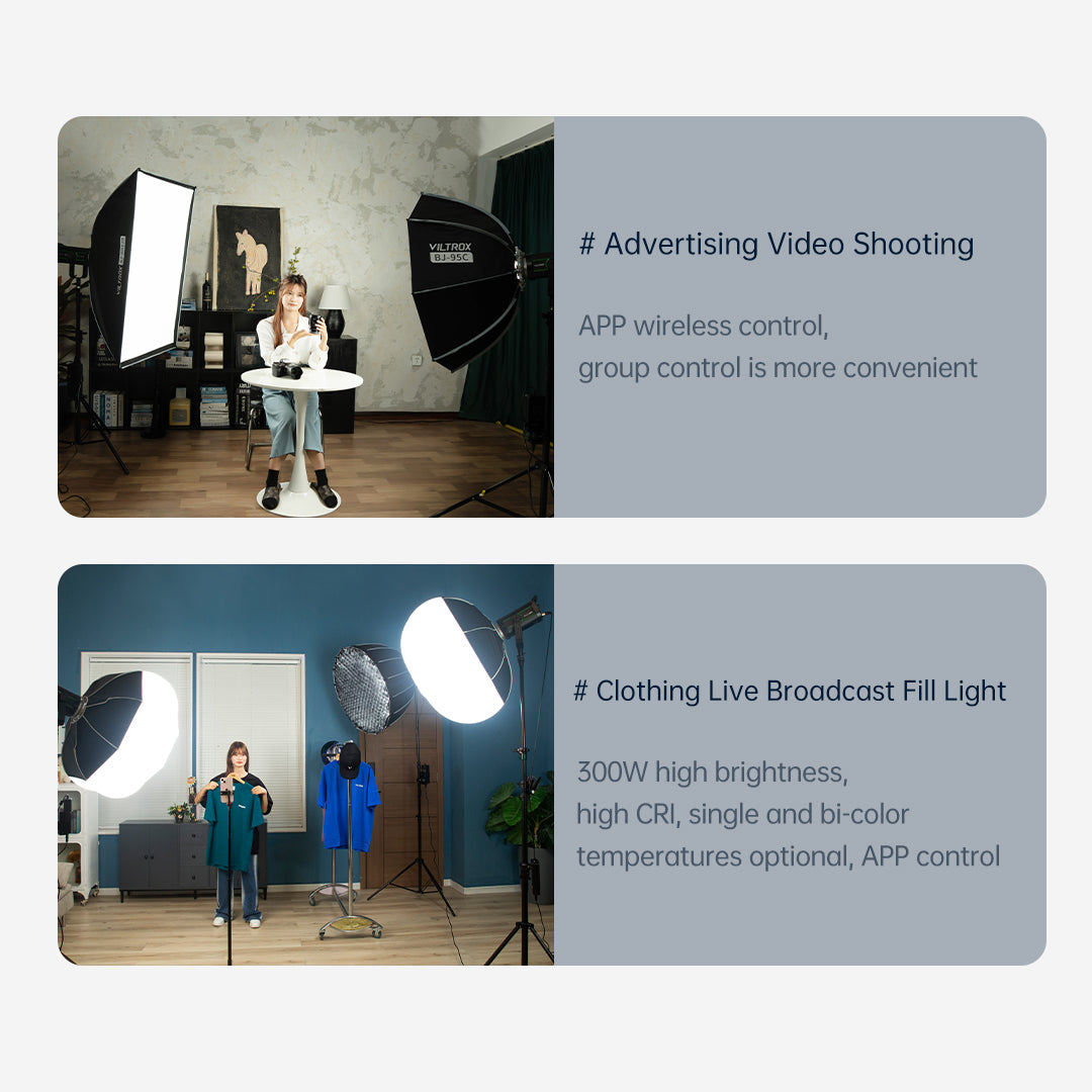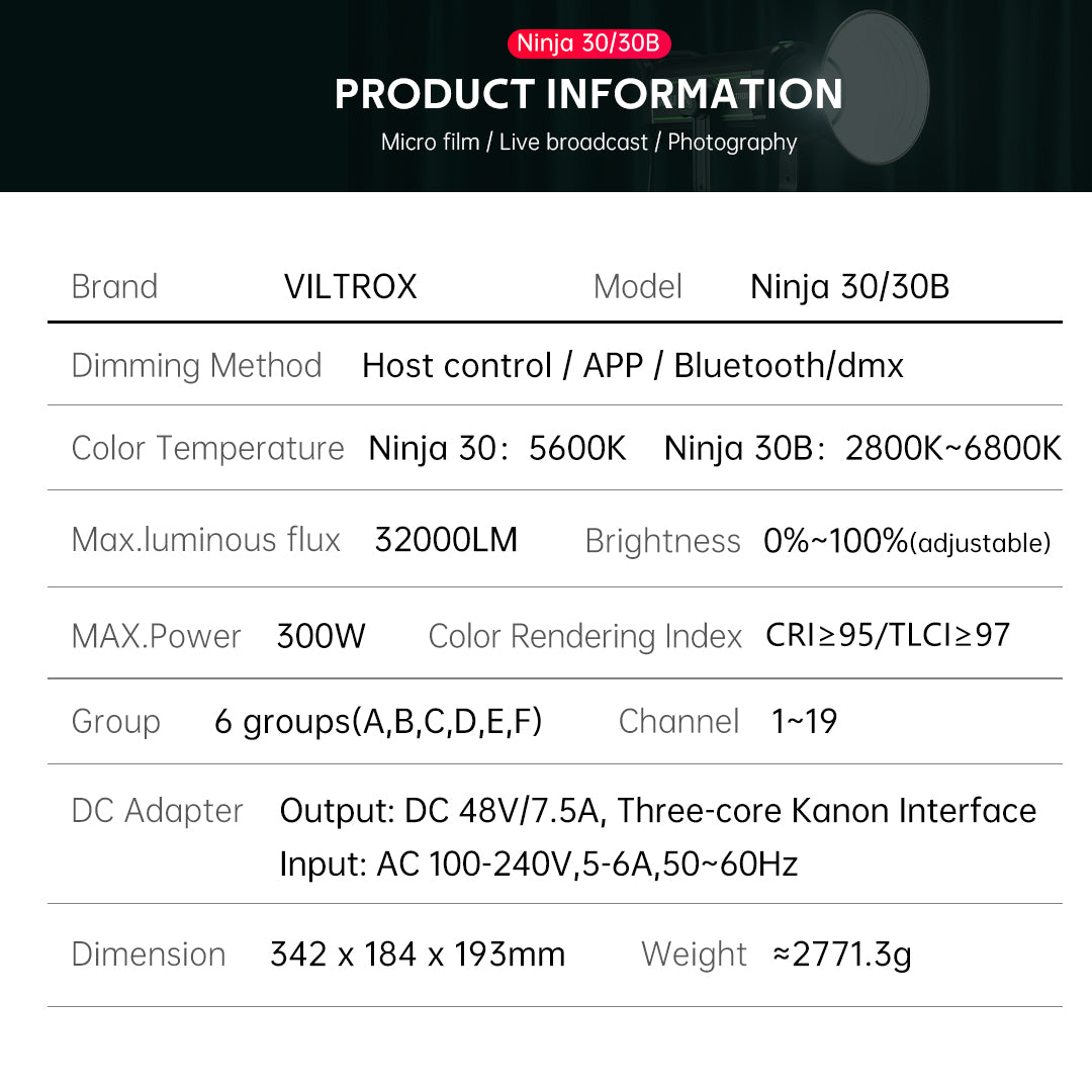 VILTROX NINJA 30/30B 300W hohe Helligkeit Single/Bi-color COB Studio Licht mit 6/10 FX Lichteffekte Steuerung über Mobile APP