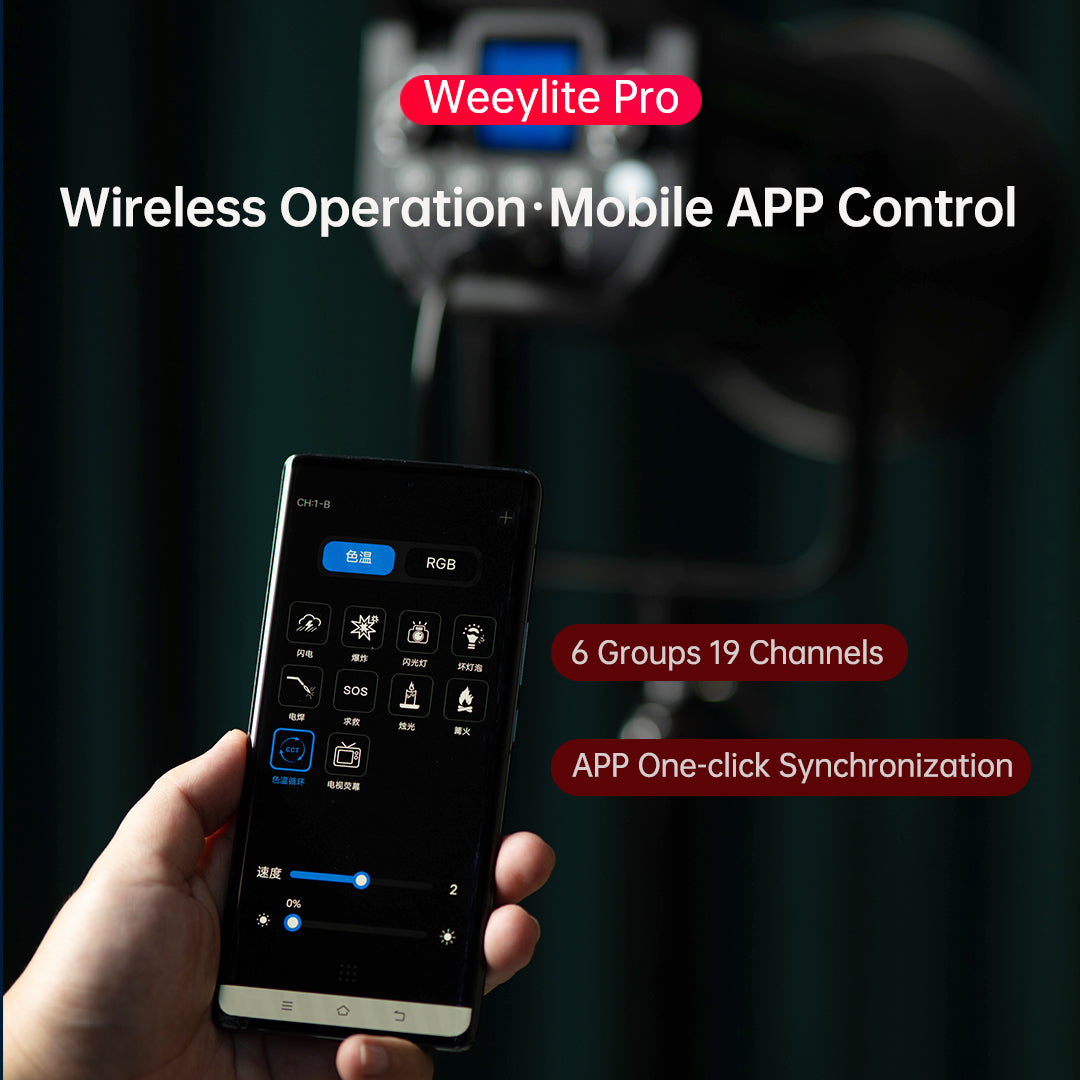 Eingebauter kabelloser Empfangschip, über die WeeylitePro APP können Sie die Einstellungen und Parameter der verschiedenen Leuchten der NINJA 30 Serie auf Ihrem Smartphone oder Tablet genau steuern, was noch mehr Begeisterung auslöst