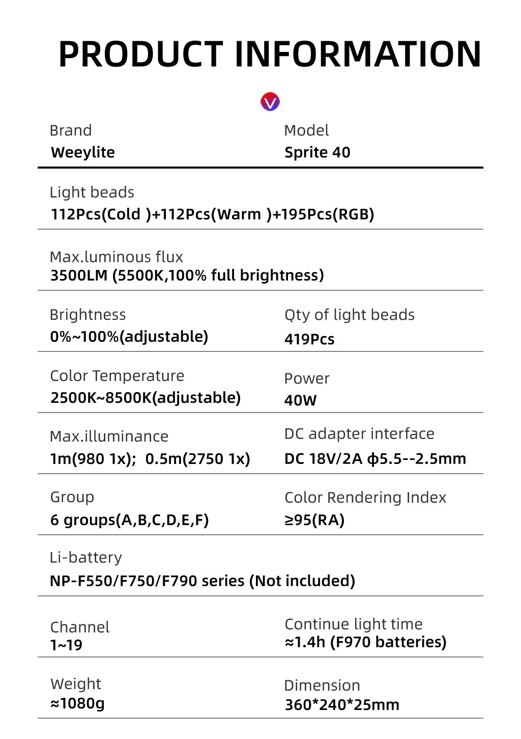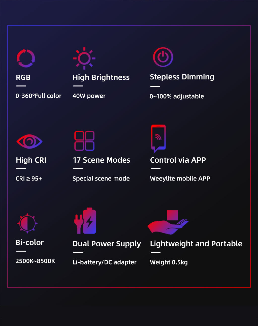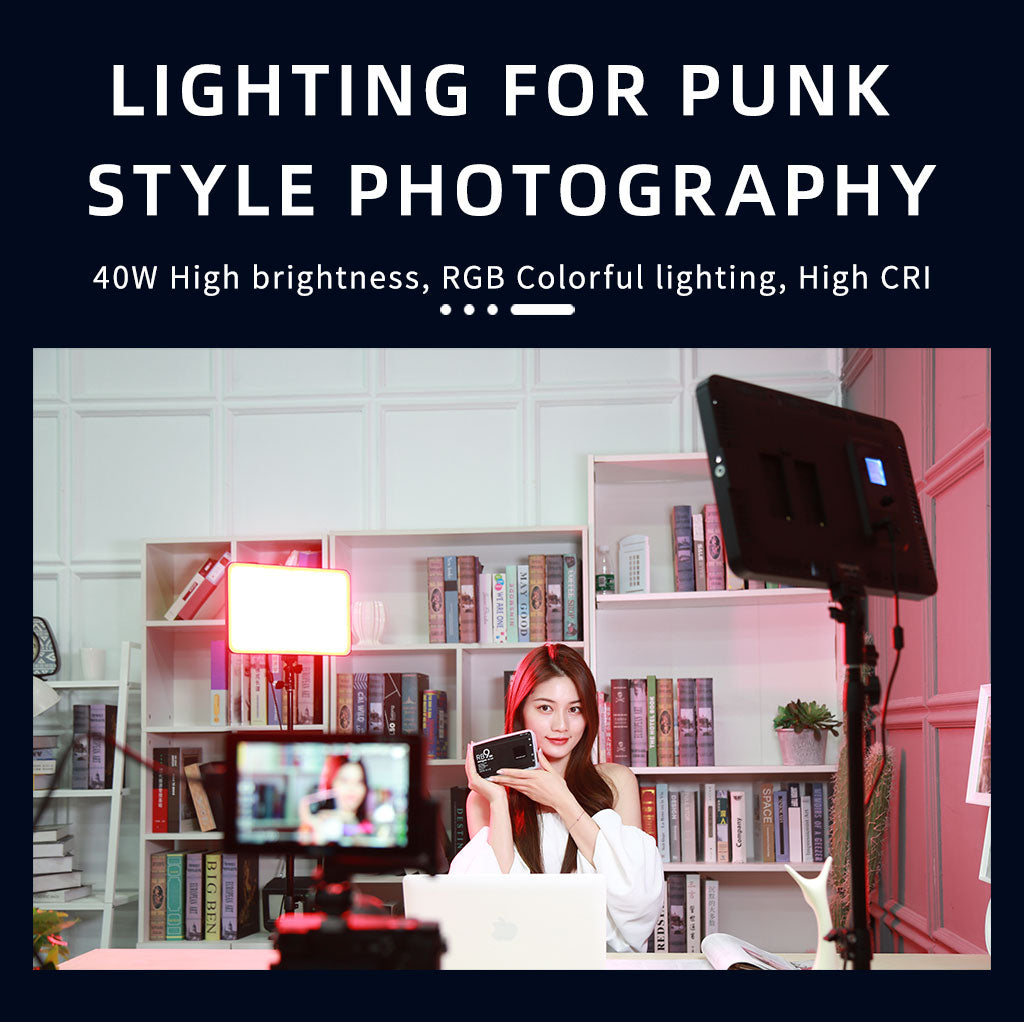 Sprite 40 ist ein professionelles RGB-Licht für die Fotografie, das sich durch einen hohen Index (weiß+warm) und hochwertige farbige RGB-Lampenperlen auszeichnet, deren Farbtemperatur und Helligkeit einfach eingestellt werden kann.