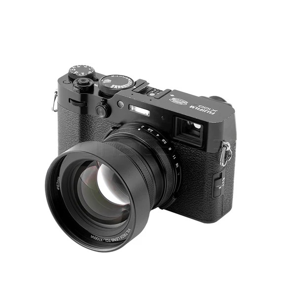 Das TCL-X100VI ist ein Tele-Konverter, der für Fujifilm X100-Kameras entwickelt wurde. Es verfügt über eine optische Konstruktion mit 4 Gruppen und 5 Elementen und wird auf die Vorderseite der Kameras der X100-Serie aufgesetzt.