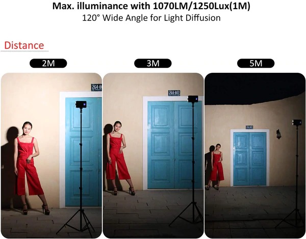 Dimmbare und Farbmodi Funktion: Helligkeitsdimmer (20%-100%) und variable Farbtemperatur (3300K-5600K) zur Aufhellung Ihrer Videos oder Bilder. Die 4 mitgelieferten Filter sind einfach über Magnet für kreative verschiedene Lichtfarben Effekte zu installieren.