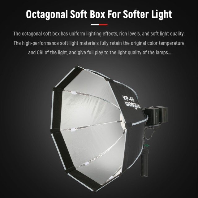 Softbox für Viltrox Weeylite Ninja 200LED Scheinwerfer . Durchmesser 60 cm, Tiefe 30 cm, Gewicht 0,41 kg. Zum Lieferumfang gehört eine Tragetasche (gefaltete Maße 45 x 17 x 17 cm, 0,79 kg).