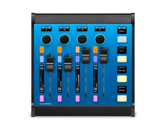 Das SKAARHOJ Wave Board Mini mit Blue Pill Inside (blau) ist ein kompakter, professioneller Audio-Mixing-Controller mit motorisierten Fadern, OLED-Displays und Encoder-Reglern, der für die präzise Audiosteuerung in Live-Produktions- und Streaming-Workflows entwickelt wurde.