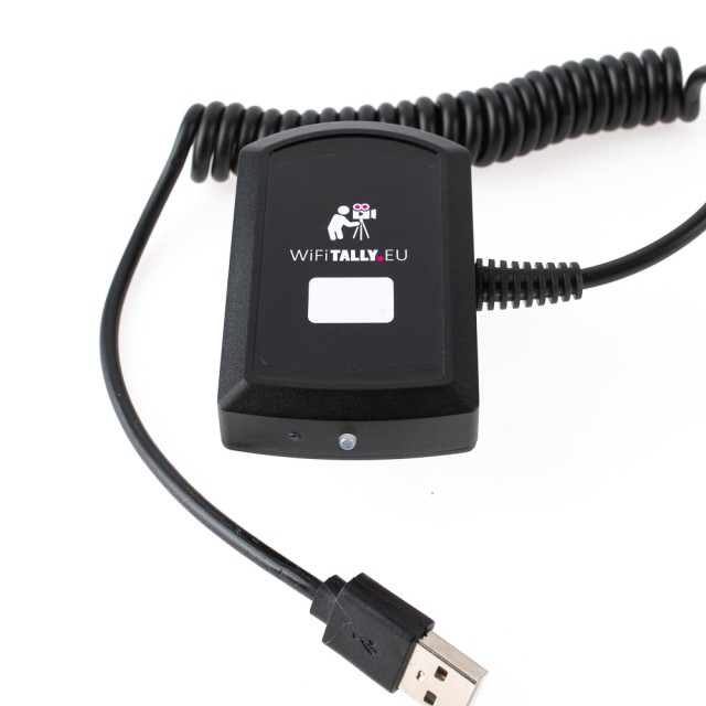 Das Gerät wird über eine Powerbank (nicht im Lieferumfang enthalten) oder eine andere 5V-Stromquelle mit einem USB-A-Anschluss mit Strom versorgt. Der WiFi Tally micro hat einen sehr geringen Stromverbrauch, mit einer normalen Powerbank kann er 4-6 Stunden betrieben werden.