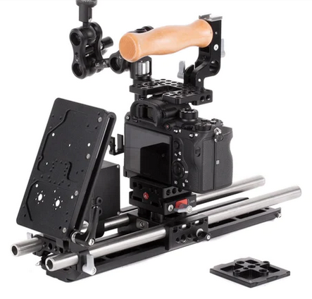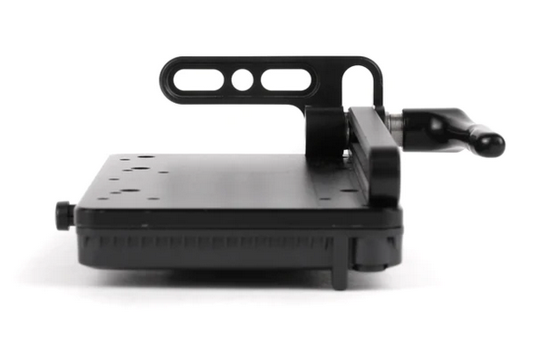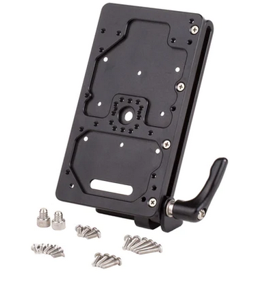 Battery Slide ist ein einstellbares Montagesystem für WC V-Mount, WC Gold Mount, QRC Gold Mount und RED®/Blueshape-Batterieplatten. Reihen von Durchgangslöchern ermöglichen die Befestigung von Stabklemmen, Cheeseplates und mehr. Üben Sie festen Druck aus, um die Platte in Position zu bringen. Lösen Sie die Rändelschraube, um die Platte nach oben und unten zu verschieben und auch zu kippen. Hervorragend geeignet zum Einstellen des Gegengewichts und für den Übergang vom Studio- zum Handbetrieb.