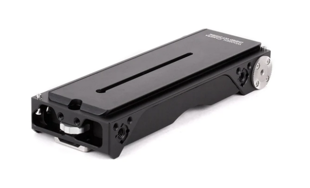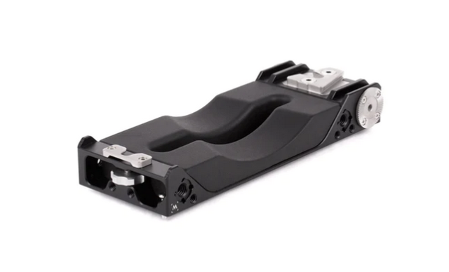 Die Unified VCT Wedge Plate ist ein Sony VCT-14 Standardgerät, das an der Unterseite aller Unified Baseplates befestigt wird. Unsere spezielle, höhenreduzierte ARRI-Schwalbenschwanzform ermöglicht es, jedes Unified-Kamerarig schnell zu installieren und richtig über der Schulter zu balancieren. Sicherheitsstift und Anschlagschrauben an den Enden verhindern ein versehentliches Entfernen. ARRI-Standardrosetten mit M6-Gewinde befinden sich auf jeder Seite und können mit unseren Rosettenabstandshaltern und Rosettenarmen für eine schnelle, handgeführte Konfiguration kombiniert werden. Ebenfalls vorhanden sind 1/4-20-Gewindebohrungen und die ARRI-Standard-Zubehörhalterungen (3/8-16-Gewindebohrung mit daneben liegenden Fixierstiften). Auf der Rückseite der Keilplatte befindet sich ein Knopf, der nach der Montage auf der VCT-14-Stativplatte festgezogen werden kann, um ein mögliches Wackeln zu verhindern.