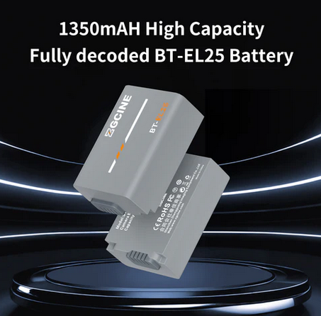 Der ZGCINE BT-EL25 ist ein vollständig entschlüsselter 1280-mAh-Ersatzakku (7,7 V) von einem Drittanbieter für Nikon Z30-, Z50- und Zfc, der in Größe und Leistung dem Original EN-EL25 entspricht – keine Warnmeldungen, vollständige Kamerakommunikation – und gleichzeitig ultraschnelles Laden (vollständige Aufladung in ~2 Stunden mit ZGCINE PS/PC-Ladegeräten) unterstützt und über einen hochwertigen 8-stufigen Sicherheitsschutz verfügt.