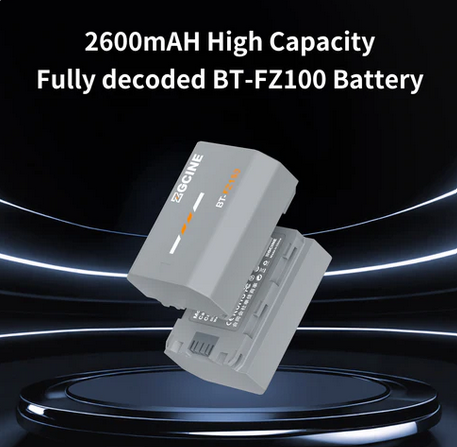 Der BT-FZ100 ist ein vollständig decodierter, leistungsstarker 2600-mAh-Ersatzakku (7,2 V) Ersatzakku von Drittanbietern für Sony-Kameras, der identisch mit dem Originalakku NP-FZ100 funktioniert – keine Pop-ups, vollständige Kamerakommunikation und exakt gleiche Abmessungen – und zusätzlich Schnellladefunktion (vollständige Aufladung in ca. 2,5 Stunden mit ZGCINE PS/PC-Ladegeräten) und erstklassigen 8-stufigen Sicherheitsschutz bietet.