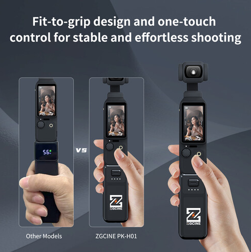 Der ZGCINE PK-H01 Batteriegriff ist der erste von einem Drittanbieter entwickelte Batteriegriff für den DJI Osmo Pocket 3. Er ist kompakt und tragbar und bietet eine längere Akkulaufzeit, schnelles Aufladen und eine bequeme Datenübertragung direkt auf Ihren Computer.