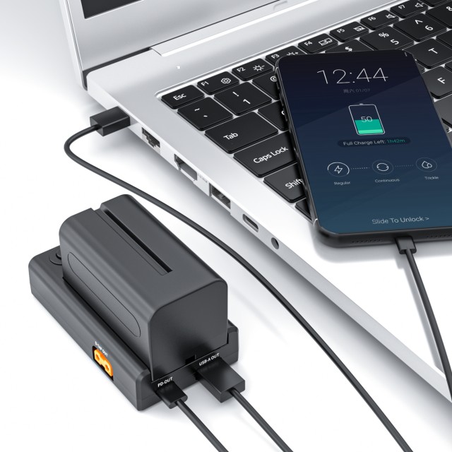 Ausgestattet mit einem USB-C PD-Eingang und -Ausgang, einem USB-A-Ausgang und einem D-Tap-Ausgang sorgt dieser Adapter für Flexibilität und Bequemlichkeit bei Setups für unterwegs. Sein kompaktes Design macht ihn zu einer ausgezeichneten reisefreundlichen Stromversorgungslösung für die professionelle Videoproduktion.