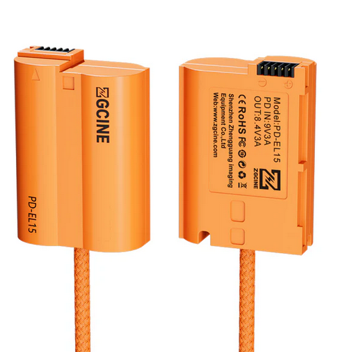 Verlängern Sie die Betriebsdauer Ihrer Kamera mit dem Dummy-Akku ZGCINE PD-EL15. Dieses kompakte Gerät mit der Katalognummer PD-EL15 sorgt durch den Anschluss an eine USB-PD-Stromquelle für kontinuierliche Aufnahmen. Es eignet sich ideal für längere Videoaufnahmen und Fotosessions und bietet eine zuverlässige und praktische Stromversorgungslösung, die den Akkuwechsel überflüssig macht, sodass Sie sich ganz auf die Aufnahme Ihrer besten Bilder konzentrieren können. Optimieren Sie Ihren Workflow und verpassen Sie keinen Moment mehr.