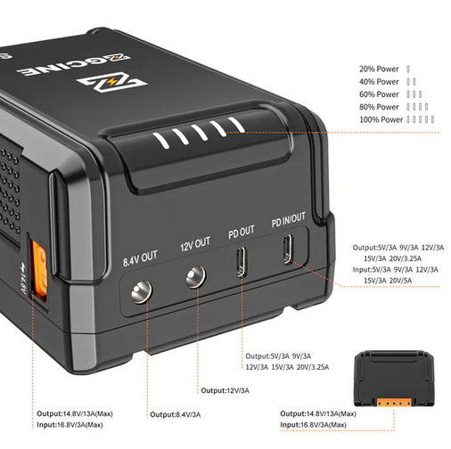 Die ZGCINE V-Mount Battery 16.8V 150Wh ist eine leistungsstarke Stromversorgungslösung mit zwei USB-C PD-, zwei D-Tap- und zwei DC-Ausgängen, die sich ideal für professionelle Video- und Fotoausrüstung eignet.