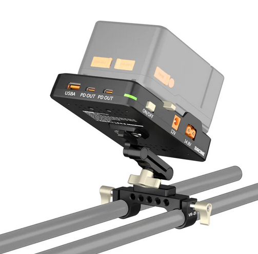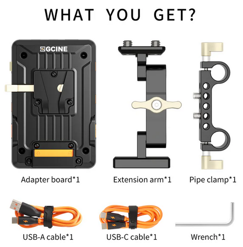 Die ZGCINE V-Mount-Platte VP1 Kit3 bietet vielseitige Stromversorgungslösungen mit USB-C-PD-Ausgängen, mehreren Ausgangsanschlüssen und einem verstellbaren Arm für Kamera-Rigs. Es verfügt über eine Ein-Knopf-Steuerung, eine Batterieanzeige und V-Mount-Kompatibilität nach Industriestandard.