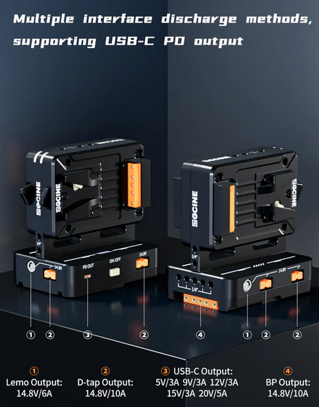 Die ZGCINE VM-HS2 Hot Swap Sharkfin V-Mount Plate bietet unterbrechungsfreie Stromversorgung mit Hot-Swap-Funktionalität und unterstützt mehrere Ausgänge, darunter USB-C PD 100W, D-Tap, Lemo 2-Pin und BP. Sie wurde für professionelle Filmemacher entwickelt und verfügt über eine Ein-Tasten-Stromsteuerung, eine Stromzugangsanzeige und einen Standard-Montagesockel für eine sichere Installation.