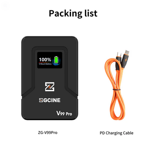 Der ZGCINE ZG-V99Pro V-Mount-Akku ist eine verbesserte Version des V99 mit PD 100W-Schnellladefunktion, mehreren Ausgangsanschlüssen und einem intelligenten Echtzeit-Display, was ihn zu einer leistungsstarken und vielseitigen Stromversorgungslösung für Filmemacher und Fotografen macht.