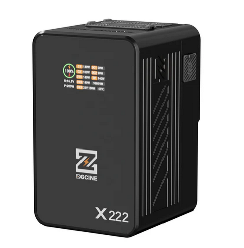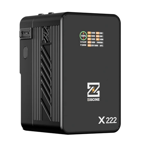 Der ZGCINE ZG-X222 ist ein leistungsstarker 222-Wh-V-Mount-Akku mit bidirektionaler USB-C-PD3.1-Schnellladefunktion (140 W), der in nur 1,5 Stunden zu 80 % aufgeladen werden kann. Er verfügt über eine Vielzahl von Ausgangsanschlüssen, darunter drei branchenweit einzigartige D-Tap-Anschlüsse (einer mit 22-V-Boost) und ein 1,4-Zoll-Smart-Digitaldisplay zur Echtzeit-Leistungsüberwachung.