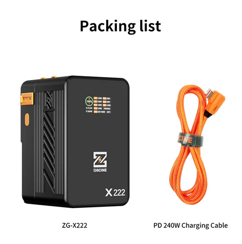 ZG-X222 V-Mount-Akku 222 Wh, PD3.1 140 W Ein-/Ausgang, mit zwei USB-C-Anschlüssen, 3-D-TAP, zwei DC-Anschlüssen, 1,4-Zoll-Digitalanzeige (orange)